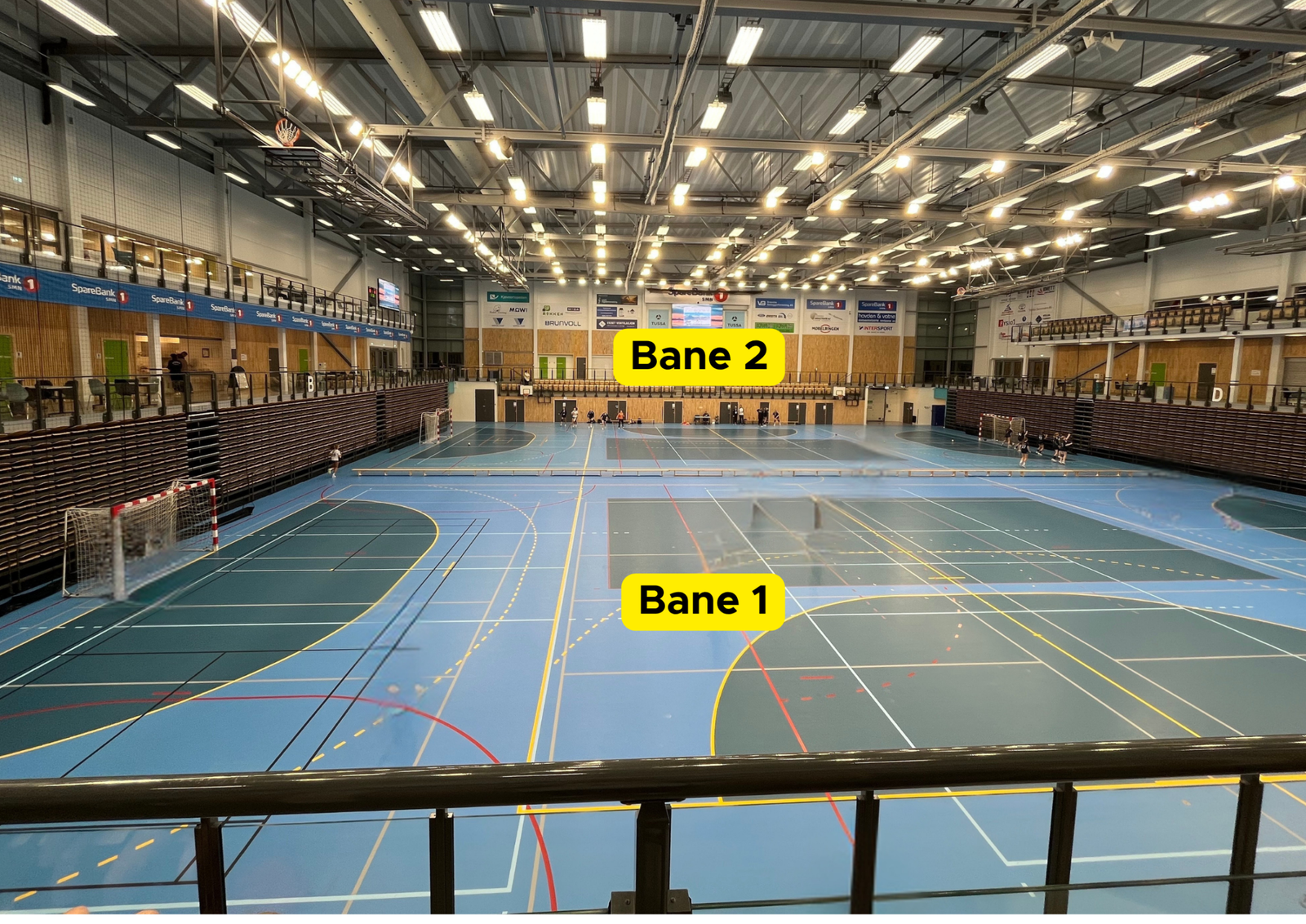 Kort informasjon og visuell framstilling av speleflatene i VCA og Idrettsbygget